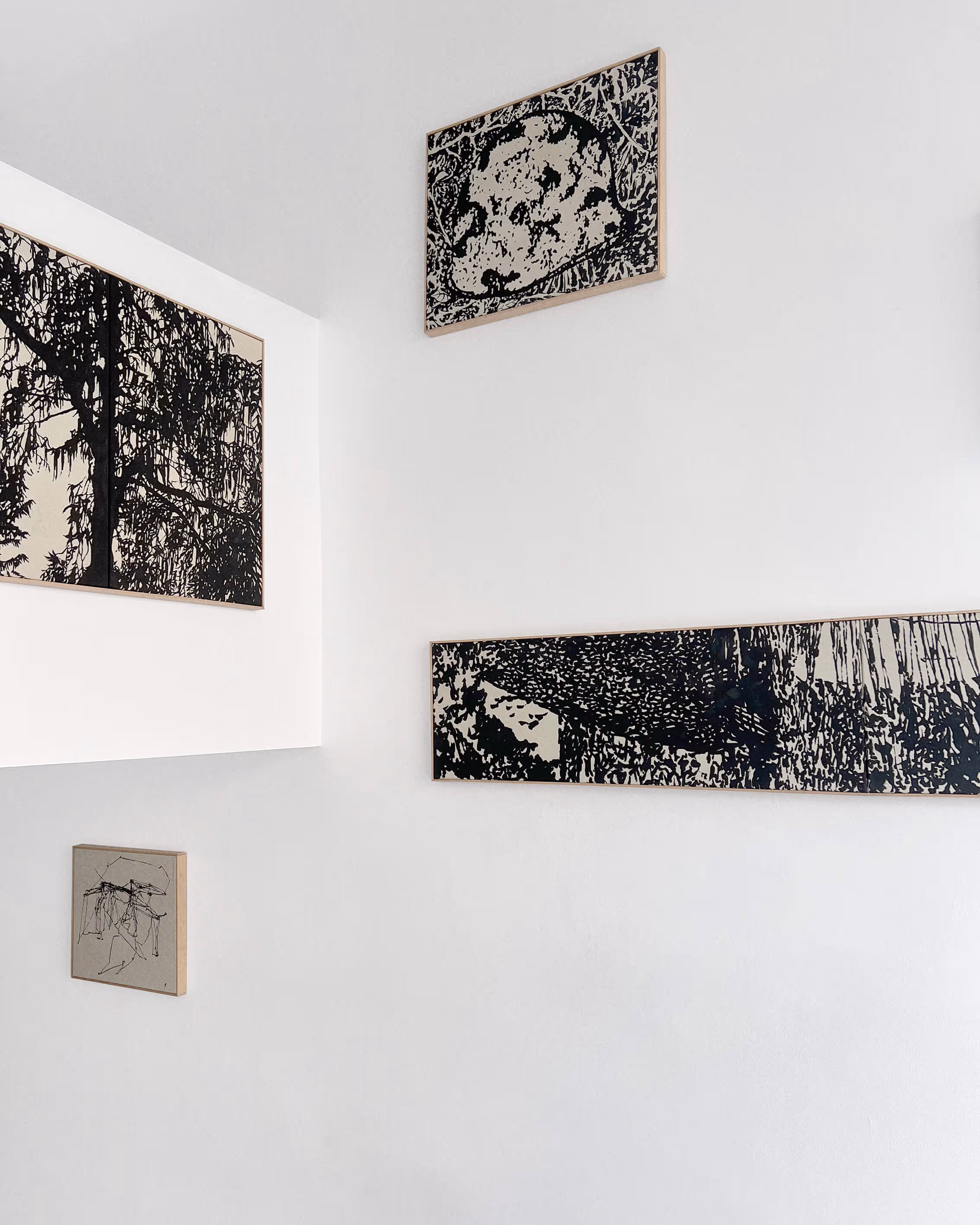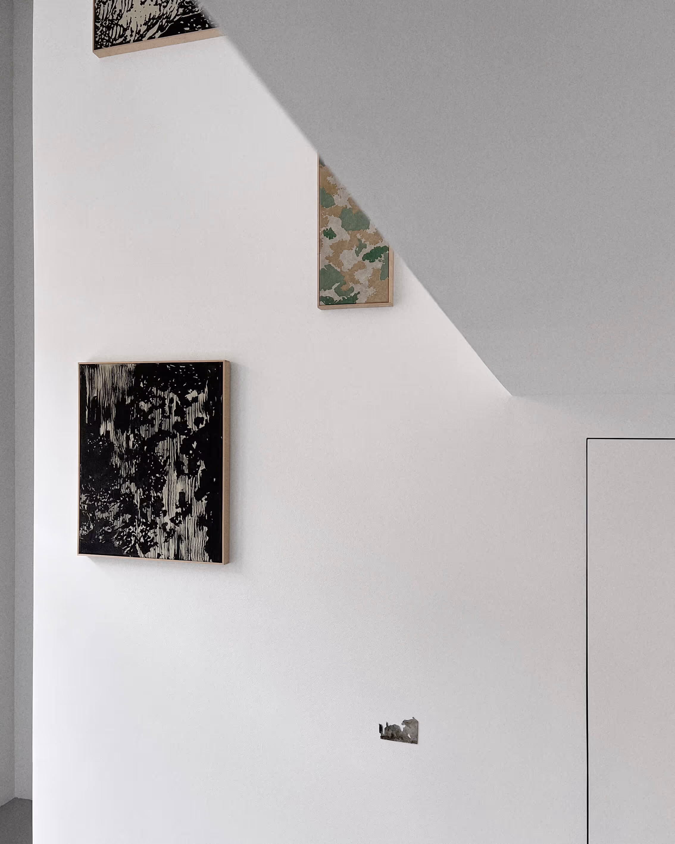 Derlow's work revolves around narratives conveyed in fragments of various materials. These pieces work on their own but are meant to be seen together in a site-specific setting where they possess the suggestive qualities of what happened, is happening, or about to happen - thus forming the notion of a story.